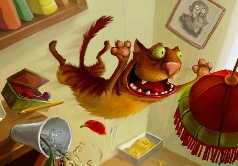 Там, щуря глаза от яркого света, на занавеске, рискуя обвалить карниз, как сарделя, висел Емеля. Кухня представляла собой кошачий апокалипсис, который неизменно наступает, когда одну исходную животинку лишают пропитания.