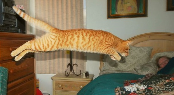 Между спальней и гостиной бодро мечется и воет, рыжей молнии подобный!