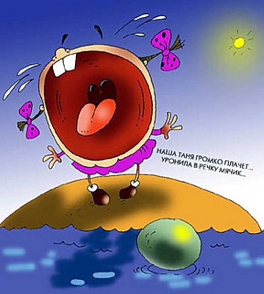 Плачет о мяче, укатившемся в пруд.
